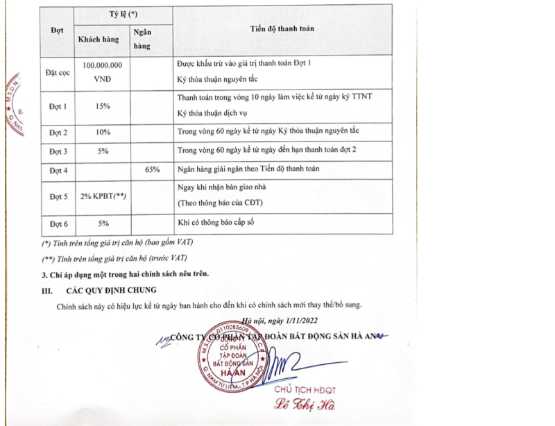 - Đợt 13: Thanh toán 5% Trong vòng 60 ngày kể từ hạn TT đợt 12